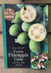 フェイジョア パイナップルジェム: (接木2~3年生)は、アメリカ カリフォルニ州、モンロビア・ナーセリーの作出品種。品質が良く非常に良好な丸井果実をつける、中生~晩生種。果重は50~70グラム程度。比較的耐寒性も強く、1本でも実が付きますが、他品種を混植したほうがより実を付けやすくなります。