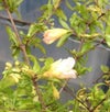 ザクロ:白花姫ザクロは、クリーム色に近い白花を咲かせる姫ザクロです。実は付きずらいようです。