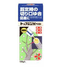 ●剪定・整枝時の切り口、胴枯病などの病患部を削り取った後の傷口に塗るペースト状の殺菌剤で、病原菌の侵入を防ぎ、枯れ込みを防止し、切り口の治りを早めます。