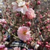 見驚 ケンキョウ: 梅の女王とも呼ばれる、ケンキョウ。淡い桃色の大輪の花は八重咲きで、見るものを驚かせるということから、見て驚かせる(見驚)と命名されたとのこと。