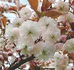 普賢象桜:フゲンゾウザクラは、日本古来室町時代より鑑賞されていた桜で、 花は淡紅色の八重咲き品種です。