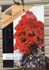 レッドホット :サルスベリ レッドホットは、宝石のような鮮やかな深紅色の花と真黒の葉が落ち着きを見せるスタイルが特徴的です。
