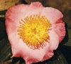肥後桜狩椿は、花は、桃色花底淡桃ボカシ、平開咲き、大輪、梅芯。