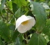 白い花とメロンのような黄色い実が人目を引きます。