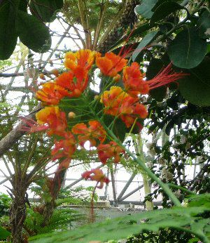 オオゴチョウ(黄胡蝶)は、中米カリブ原産の花木で、沖縄の三大名花(サンダンカ、デイゴ、オウゴチョウ)と呼ばれているとても美しいオレンジ色の花を咲かせます。