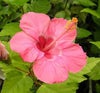 美しいピンク色のハイビスカスで、中央が赤くなる美しい花です。