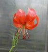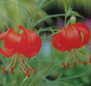 糸のような細い葉と、オレンジ色(赤色)の花が反り返るように咲く珍しいユリです。
