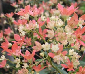 オーストラリアでは夏のクリスマスを告げる花です。 小さな星形の白い花を咲かせますが、花が終わるとガクが赤く染まり、樹木全体が赤く染まるほどです。