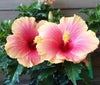 花弁の外側がオレンジ色になる可愛らしいハイビスカスです。鉢植えのハイビスカスです。
