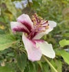 ハイビスカス インスラリス:オーストラリア原産の絶滅危惧種。葉は小さく卵型で縁に波状の鋸歯が有り、花は淡い黄白色で、中央は紅色、直径は10センチほどです。通常花は冬に開花します!