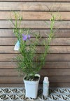 ハイビスカスに近い植物で、青紫色の美しい花を咲かせます。 枝葉が特徴的で、とても軟らかくまた折れやすく細い線形です。