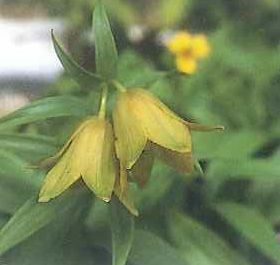 高山植物の百合で、夏に黒がかった黄色い花径3センチ程度の花を下向きに咲かせます。