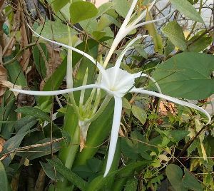 *スパイダーリリーの花は、中央が朝顔のような白い形状をしており、その周りから6本の細長い花弁が伸びるのが特徴です。