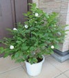 矮性夏椿(矮性シャラの木)牛若丸は、樹形が玉型のなる夏椿の矮性品種で、花は白花です。