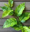 本品種は、葉に美しい斑(模様)が入る佐藤錦です。斑は黄白斑~白散斑になりますが、個体差がありますのでご理解ください。