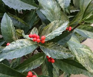 斑入り葉千両・センリョウ(赤実)