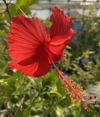 ハイビスカス レッドバタフライ Hibiscus Red butterfly 花弁が外側に反り返るバタフライタイプの赤花品種です。