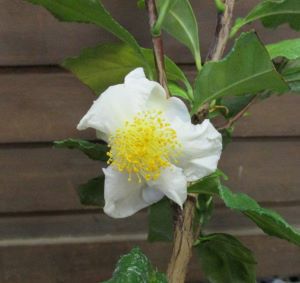 お茶の木(オチャノキ)は、椿の仲間で古くから飲まれてるお茶の原料として利用されています。また茶花や切り花としても利用され、生け垣などにも植えられている利用価値の高い植物です。