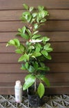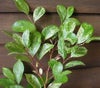 初霜は、葉に白い散り斑が入る斑入り葉品種で、秋の新芽には白芽が出る珍しいイスノキです。