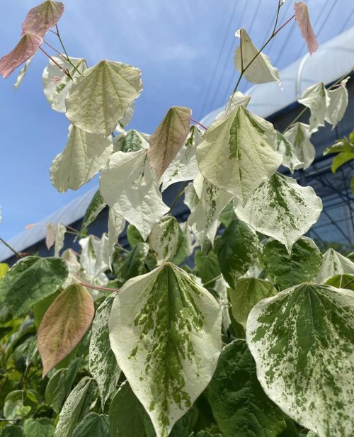 新葉が特に美しい斑入り葉のハナズオウ。