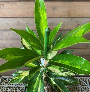 本品種は葉にクリーム色の模様が入るマテバシーです。より明るい雰囲気になるため、洋風庭園等で好まれています。