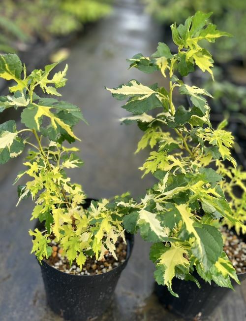 月宿り 斑入り葉桑(フイリハクワ):葉がとても美しい中斑の斑入り葉の品種です。白~黄色斑ですが、環境によって白や黄色が強く出るようです。個体差がありますのでご理解ください。