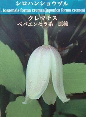 クレマチス:ハンショウヅル 白 (ベバエンセラ系)は日本に自生する原種。花は白色の半鐘型で基部がほんのりピンク色がかることがある。派手さはないが素朴な味わい。自然風な植栽に。 生育旺盛で枝がよく伸び、半日陰気味の場所のも向く。