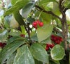 クリーム色の花を付け、その後小さな赤い玉が沢山集まって球形を作る特徴的な実を付けます。