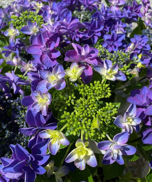 アジサイ 恋恋(品種登録申請中):濃い花色の八重咲きを咲かせるガク咲きの大輪紫陽花。花色は土壌で変化します。