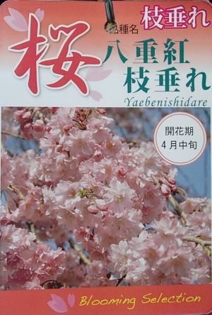 八重紅枝垂れ桜(ヤエベニシダレサクラ)は、エドヒガン系サクラで花は淡紅紫色の八重咲きで、枝も花も枝垂れる、シダレザクラです。ベニヤエシダレザクラ(紅八重枝垂桜)とも言われる。