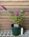 *鮮明な赤紫色の花を咲かせる矮性種のブッドレア、蝶を引き寄せる香りの良い花を夏から霜の振るころまで咲き続けます。