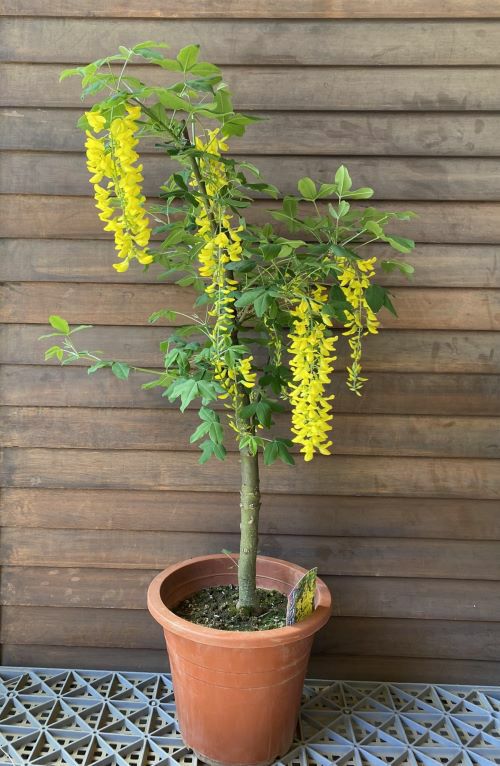 花は鮮やかな黄色で藤の花のように垂れさがり、下に向かって咲き非常に美しいと人気があります。