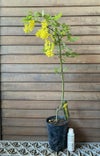 花は鮮やかな黄色で藤の花のように垂れさがり、下に向かって咲き非常に美しいと人気があります。