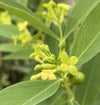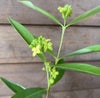 ヤンバルガンピは、沈丁花の仲間で、花も実も楽しめる新しい品種の最近注目を集めている植物です。 開花後の実は、最初緑色をしていますが、オレンジ色へ変わり最後に赤色に変化していきます。葉の緑色とのコントラストが見事な植物です。