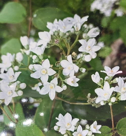四川ウツギは、小型でブッシュ状に育ち開花時期が、5月から9月と長く、白色の小さな星型の花を房状に咲かせる人気のウツギです。