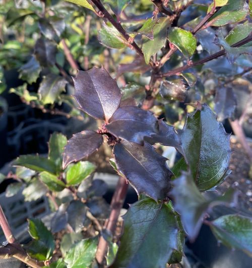 青~紫色の葉が特徴の西洋柊、ブループリンセス。 お庭の寄せ植えなどに最適な柊です。