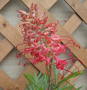美しい色の花と、切れ込みが特徴的な葉が人気の小型グレヴィレアで、切り花などにも利用されています。