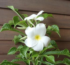 プルメリア :プディカ(白花)は、プルメリアの原種系品種で、長細い葉の先がスペードの形をしたとても珍しい品種です。